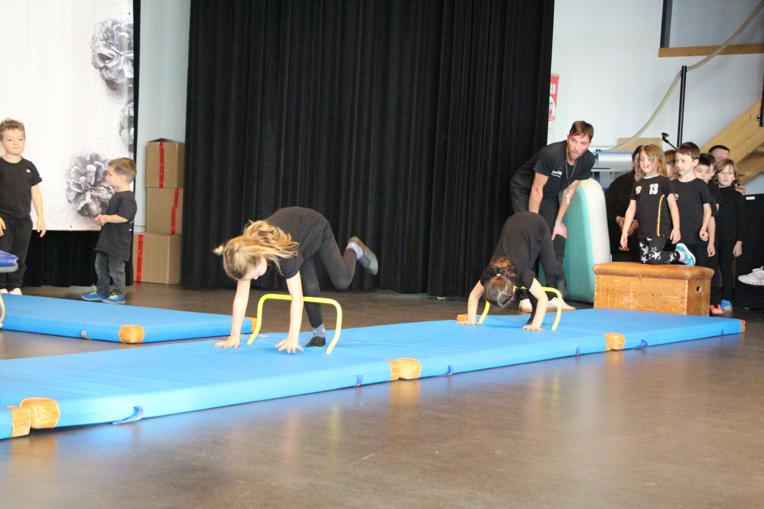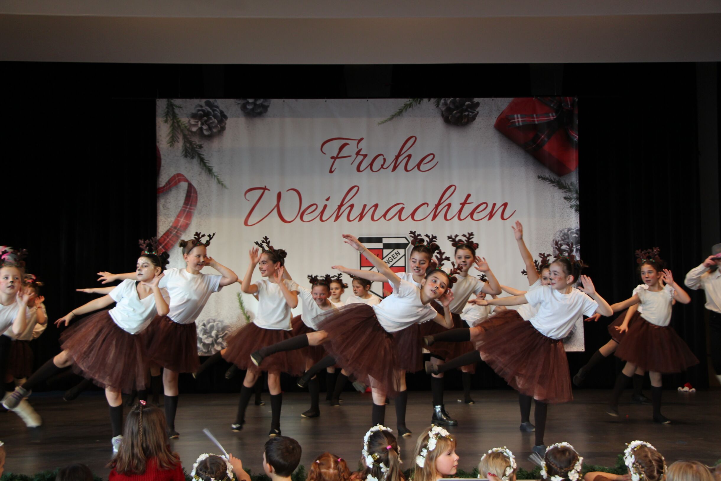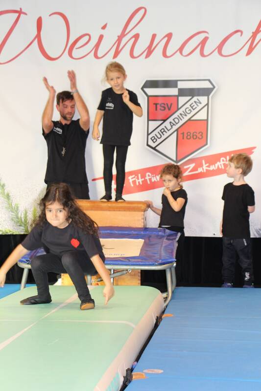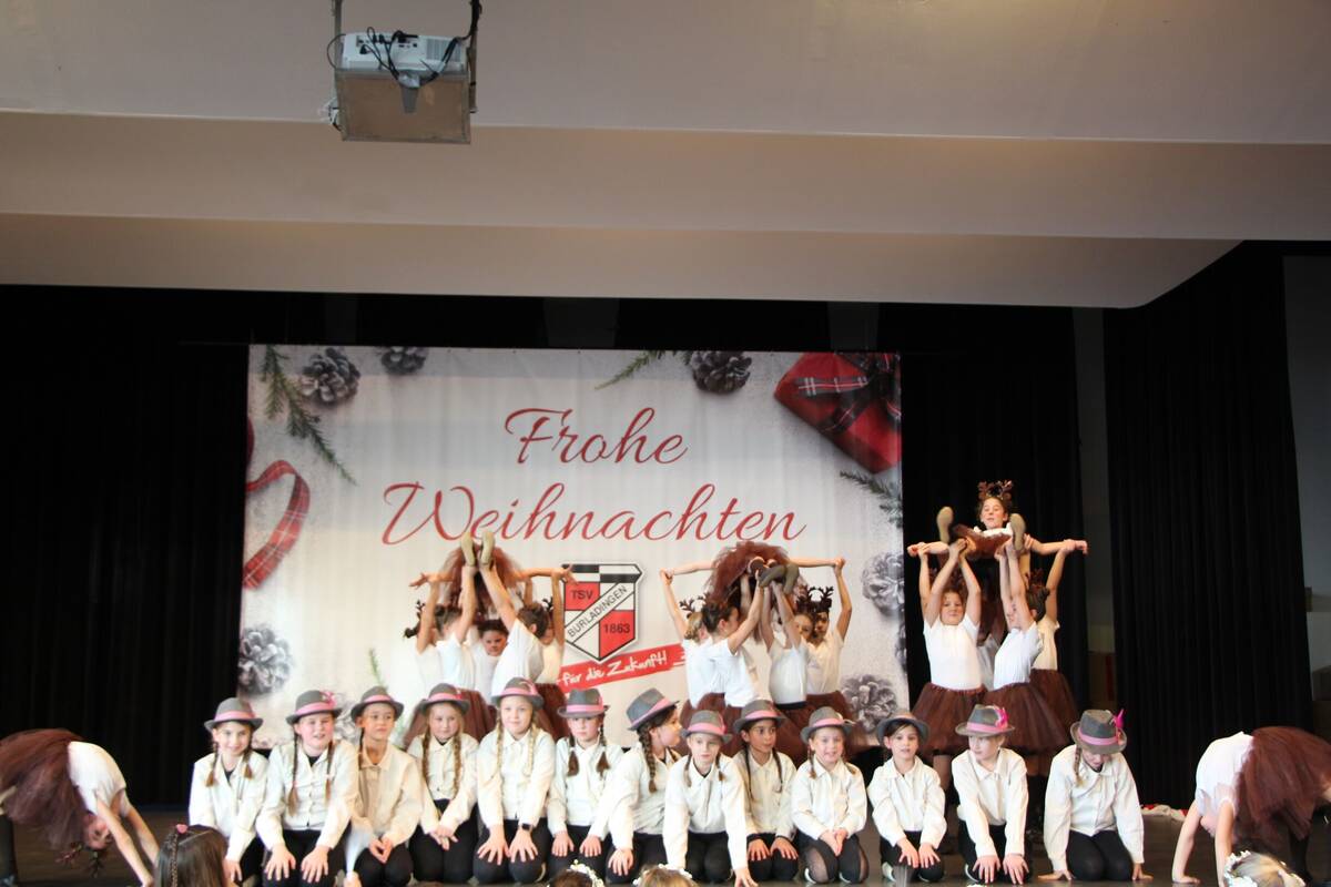 Die Dancing Crew mit vier Gruppen und über 130 Kinder verzauberte die Besucher unter dem Motto „Der Wald bebt“, wobei Gruppe vier mit Trainerin Sarah Klaiber mit ihren Waldgeistern den Auftakt machte. Der Vorsitzende des TSV Burladingen Roland Klumpner hieß die vielen Eltern, Großeltern und Kinder herzlich willkommen und nutzte die Gelegenheit den über 100 ehrenamtlichen Trainerinnen, Trainern und Funktionären im Verein zu danken. Der Verein zählt derzeit rund 1500 Mitglieder in 16 Abteilungen. Die Abteilung Kinderturnen mit Robin und Gabriela Dunger zeigte sich als „Black Panther“ ehe vor der Pause Gruppe zwei mit Trainerin Sabrina Pfister als „Die Jäger und Ihre Rehe“ auftraten. In der Pause unterhielt eine Bläserguppe der Stadtkapelle mit Weihnachtsliedern. Danach ging es weiter mit Gruppe Drei der Dancing Crew und Trainerin Jana Löffler mit ihren „Rotkäppchen“. Dann wurde von Kindern der Dancing Crew das Werteleitbild vorgestellt. „Vielseitigkeit“, der Verein sei mehr als nur ein Sportverein, man übernehme als offener Mehrspartenverein Verantwortung und engagiere sich für die Integration aller gesellschaftlichen Gruppen. „Teamgeist“, denn man lebe Zusammenhalt und Miteinander, sei verbunden durch die Individuellen und gemeinsamen Ziele. „Respekt und Wertschätzung“, da man darauf gegenüber den Mitgliedern und der Gemeinschaft großen Wert lege, und eine positive Atmosphäre fördere in der sich alle wohl und geschätzt fühlen. „Spaß und Leidenschaft“ mit der man alle begeistere die Freude am Sport und am Vereinsleben haben. Schließlich „Verlässlichkeit und Hilfsbereitschaft“, was dem Verein auf sportlicher und organisatorischer Ebene wichtig sei, man übernehme Verantwortung, unterstütze und helfe über Abteilungsgrenzen hinweg. Abschließend war ein zweites die Dancing Crew mit Sabrina Pfister an der Reihe, dieses mal mit Gruppe eins, „Die Waldfeen mit dem Kobold“. Zu diesem Zeitpunkt war die reichhaltige Tombola längst ausverkauft. Nachdem der Vorsitzende des TSV Burladingen die vielen Besucher verabschiedete hatte, erschien der Nikolaus mit seinem Knecht Ruprecht und hatte Geschenke für die Kinder dabei.